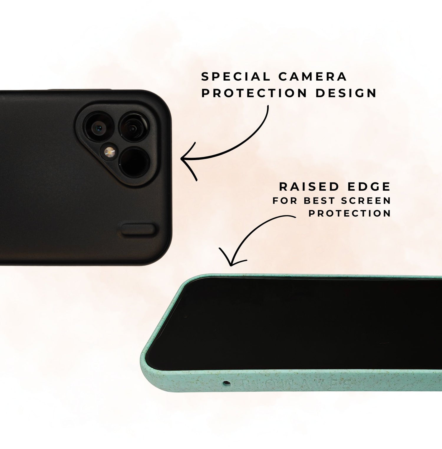 The Biowaves case is made from a biodegradable, pollutant-free material mix with recycled components. It contains no plasticizers, BPA, or other questionable additives and is skin-friendly and odorless.